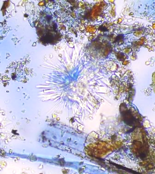 - Pollen and vegetation fragments.